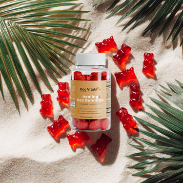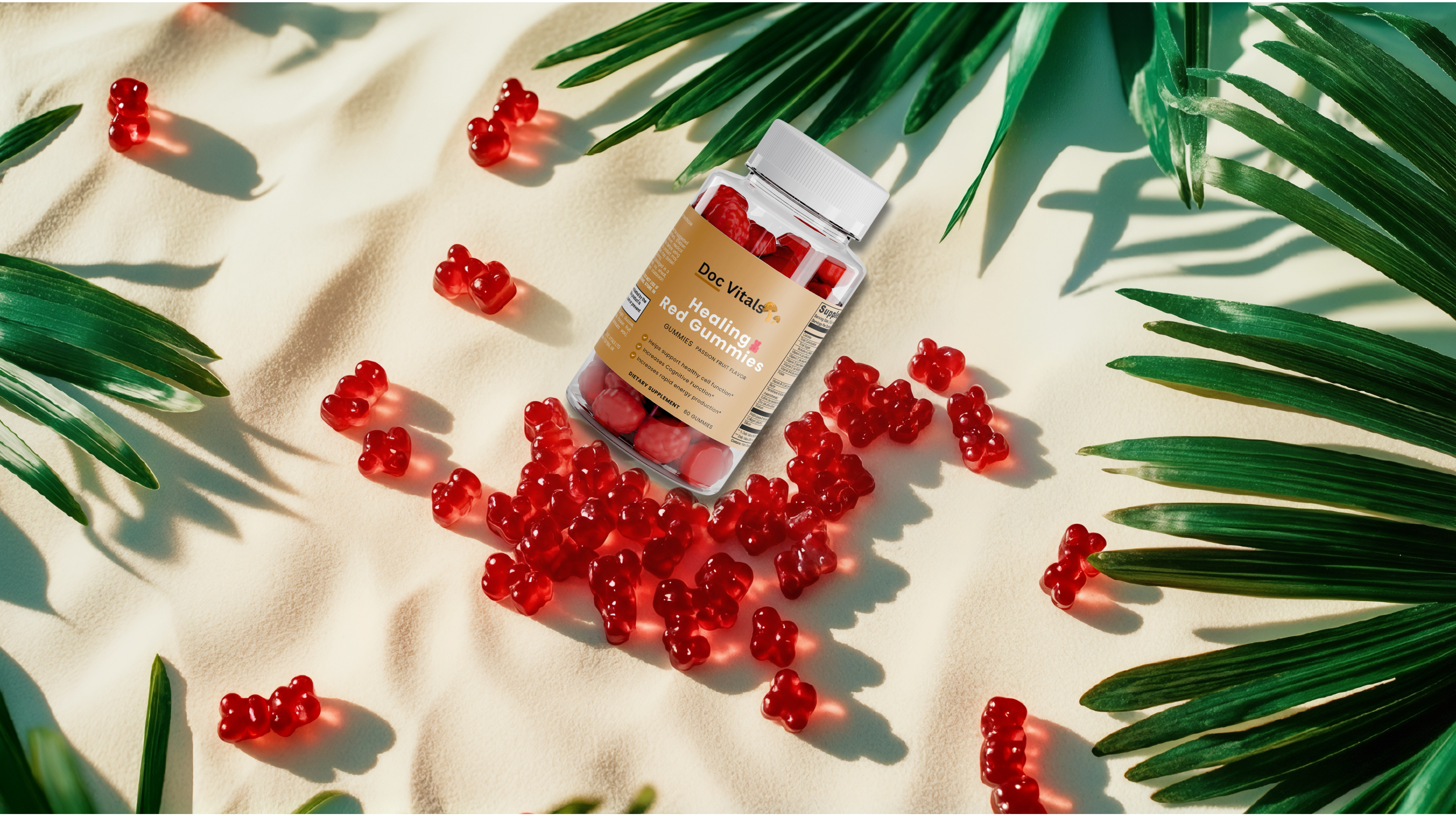 Healing Red Gummy: A carefully formulated blend of biotin, collagen, and essential vitamins and minerals—selected to support healthy hair growth, stronger nails, and radiant skin from within, in alignment with holistic, plant-forward wellness principles.
